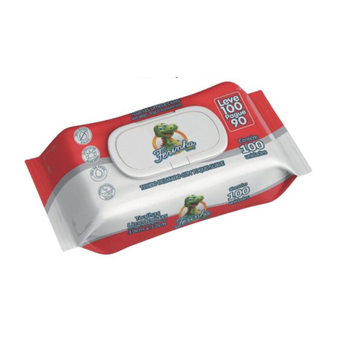 Toalha Umedecida com 100 Unidades 19x12cm Fliptop – Ferinha Baby: Cuidado e Proteção para o seu Bebê