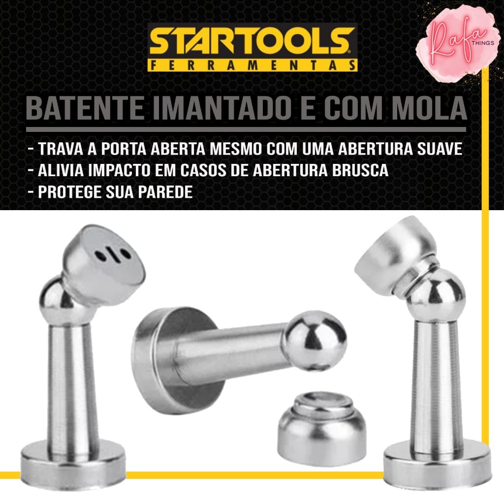 O Trava / Fixador Para Porta Magnético Startools é um dispositivo prático e eficiente projetado para manter portas abertas de forma segura e discreta. Ele utiliza um sistema magnético para fixar a porta, evitando que ela se feche sozinha com correntes de ar ou outros fatores.