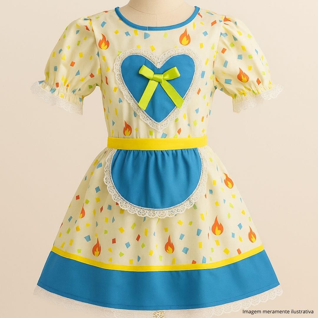 Produzido com materiais leves e confortáveis, o Vestido Caipira Bella Festa é ideal para as temperaturas mais amenas das noites de São João, permitindo que as crianças brinquem à vontade sem desconforto. A combinação do vestido com a bermuda é um diferencial que garante segurança e praticidade, tornando este look indispensável para qualquer arraial ou quadrilha.