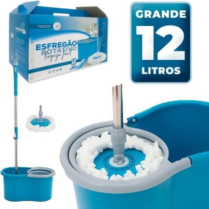 Mop Giratório com Balde de 12L e Refil de Microfibra – Facilite.ud Limpeza