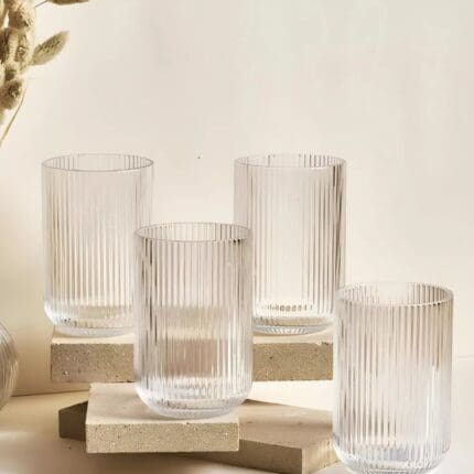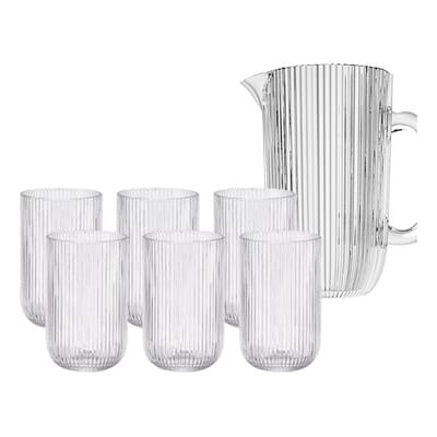 Conjunto de 7 Peças com 1 Jarra e 6 Copos de Vidro Canelado – Madô