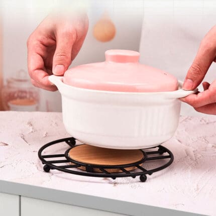 Descanso de Panela de Metal e Madeira 18x18x15cm Linha Black – Rio Home