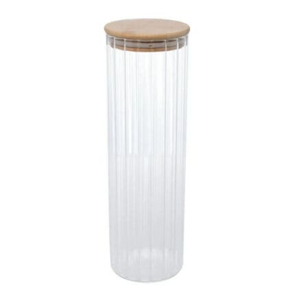 Pote para Mantimentos de Vidro Borossilicato Canelado com Tampa de Bambu 1300ml – 123Útil
