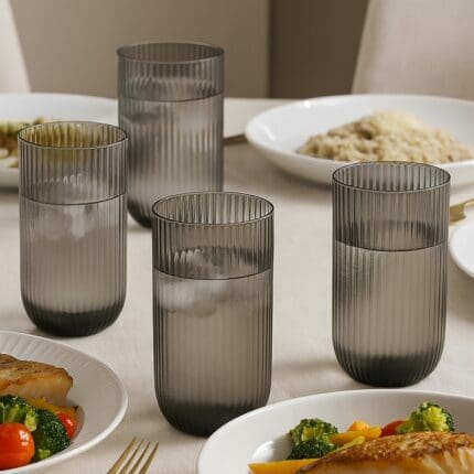 Conjunto com 6 Copos de Vidro Canelado 450ML Linha RAYÉ – 123 Útil