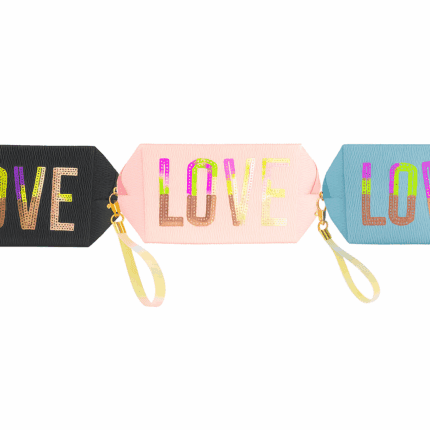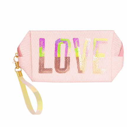 Apresentamos a Necessaire com Alça Paetê Love, o acessório perfeito para quem busca um toque de brilho, estilo e funcionalidade no seu cotidiano!